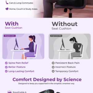Carepath Memory foam seat cushion | Pain relief seat cushion for office chair, desk for long sitting, sciatica ,back & butt _Orthopedic office chair cushions for back pain, Car travel | Extra Dense