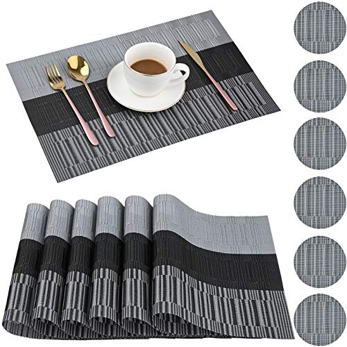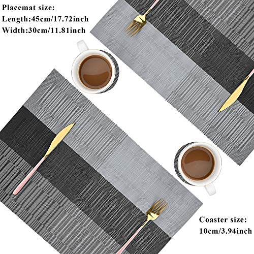 Package Included: Placemats set of 6, Size:18″×12″(45cm×30cm), Coasters set of 6, Size:3.93″×3.93″(10cm×10cm);All placemats are cut by hand and maybe 1~2 cm. High-quality materials: FDA Approved and environmentally PVC materials are used for the placemats, very durable.